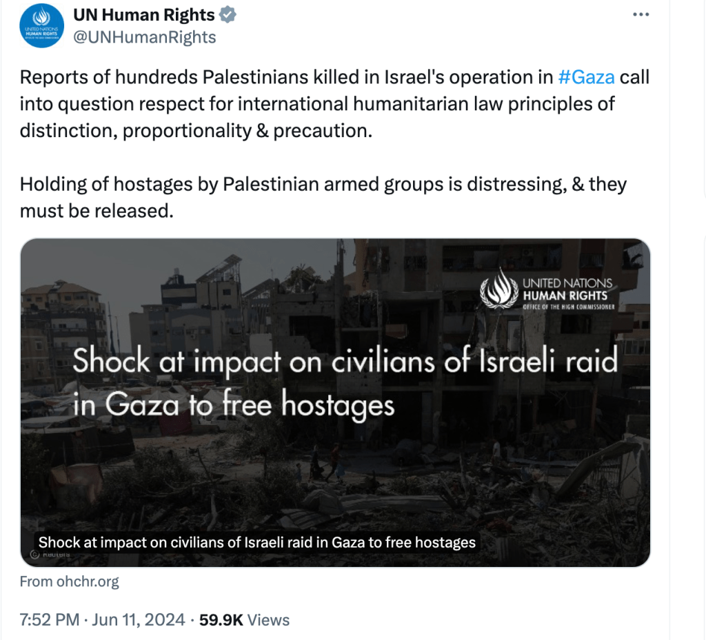 سازمان ملل متحد بیانیه ای بحث برانگیز درباره عملیات نجات توسط ارتش اسرائیل صادر کرد. بیانیه ای که می گوید عملیات ارتش اسرائیل می تواند جنایات جنگی را نقض کند. از نو.